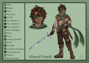 Each reference sheet features at least one full body, a bust of your character and a colour palette based off the colours in the design of the character within the reference sheet.